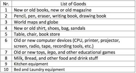 - Goods for Charity. Please see Table 1.