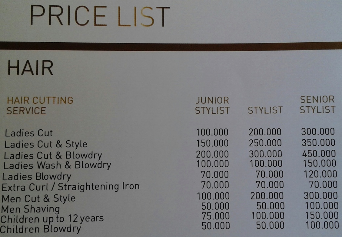 Salah satu strategi harga yang dapat dilakukan adalah membuat range harga yang bisa dipilih oleh konsumen. Pada Gambar 1 dapat disimak, pilihan harga untuk jasa potong rambut sesuai dengan keterampilan dari karyawan.